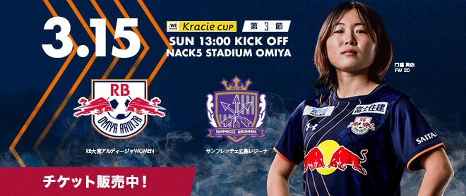 【WEリーグ】RB大宮アルディージャWOMEN対サンフレッチェ広島レジーナ WEリーグ クラシエカップ グループステージ 3/15(日) 13:00 |